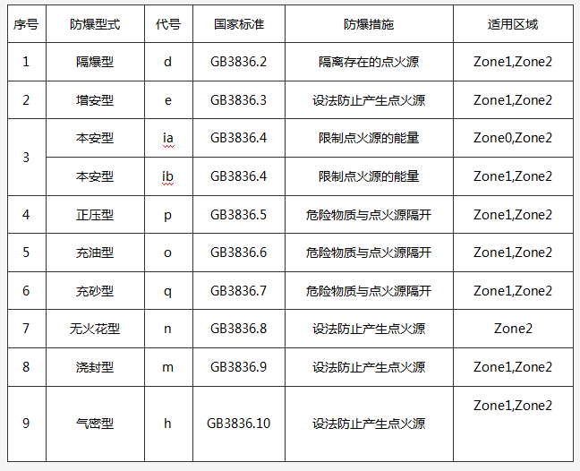 二、防爆方法對危險場所的適用性: